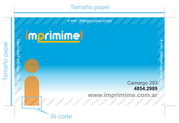 Respetar los 4mm. de margen mínimo hacia adentro para los textos e imágenes que no deban recortarse.